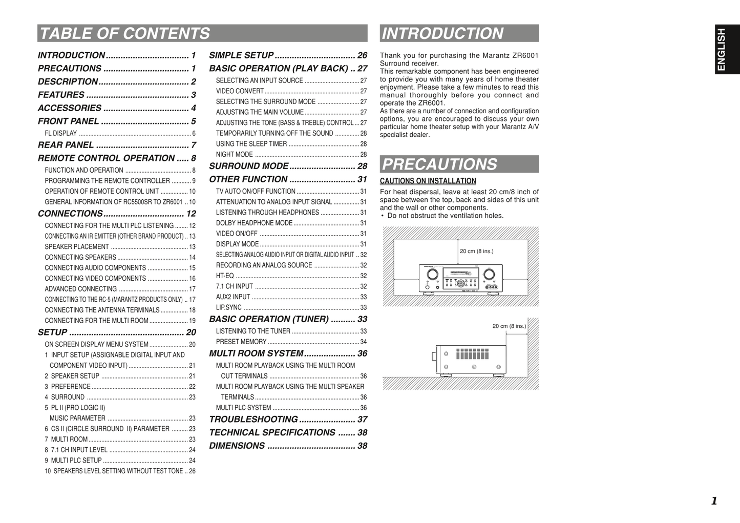 Download or print the Operating Manual manual for Marantz ZR6001 AV Receiver Owner/ User Manual (Pages: 56) today. This manual includes nan pages of detailed information. Choose to download it or get a professionally printed copy from Manuali.