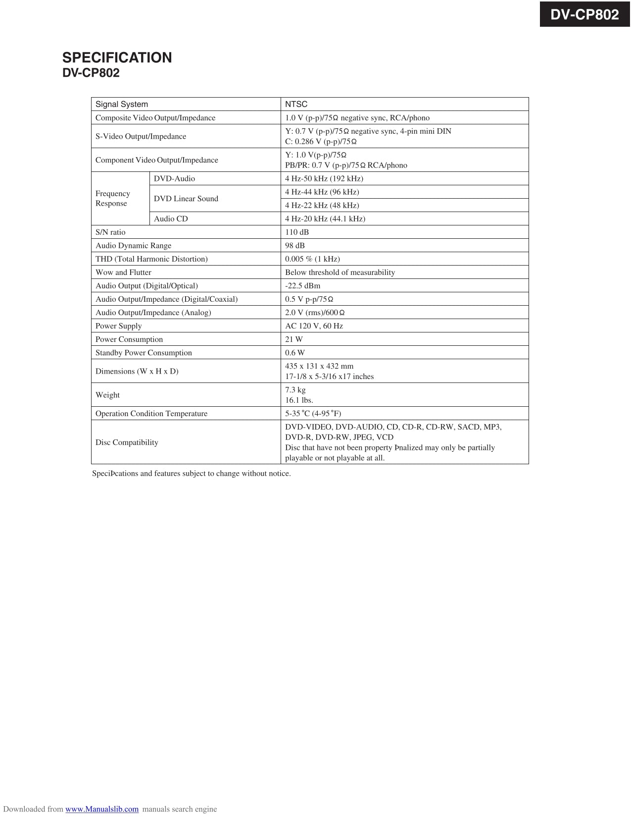 Find all the information you need for the Onkyo DV-CP802 DVD Player/ Changer Service Manual (Pages: 139) manual from Onkyo. This Service Manual manual is available in both digital download and printed formats from Manuali, your trusted source for professional printing services. This manual contains 139 pages.