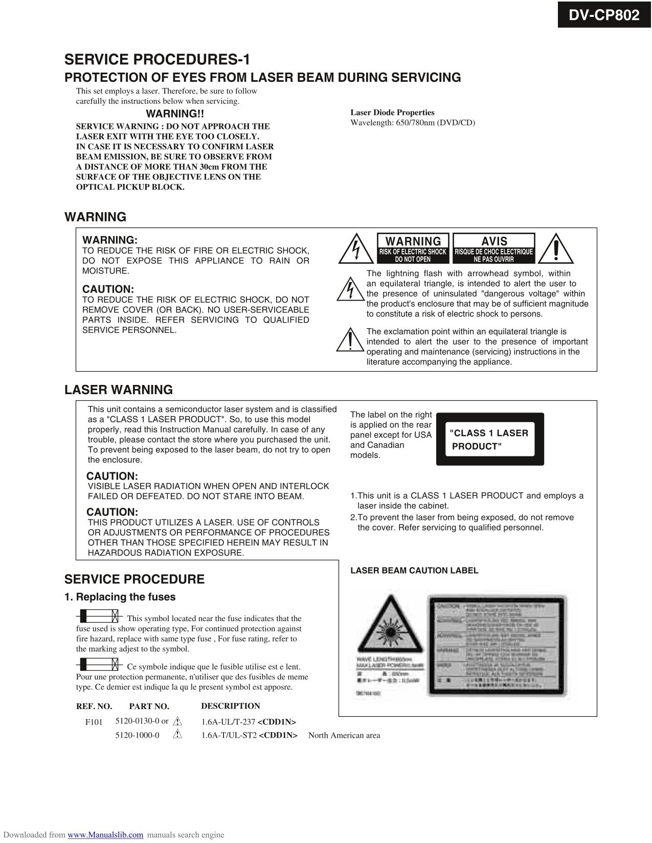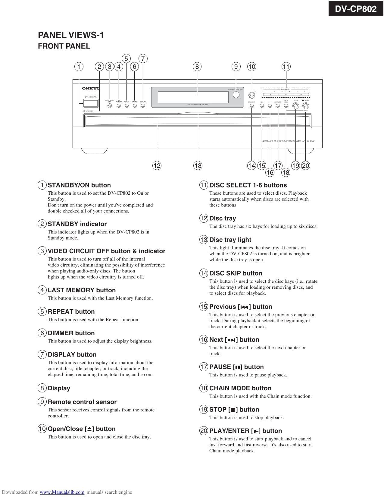 Onkyo DV-CP802 DVD Player/ Changer Service Manual (Pages: 139)