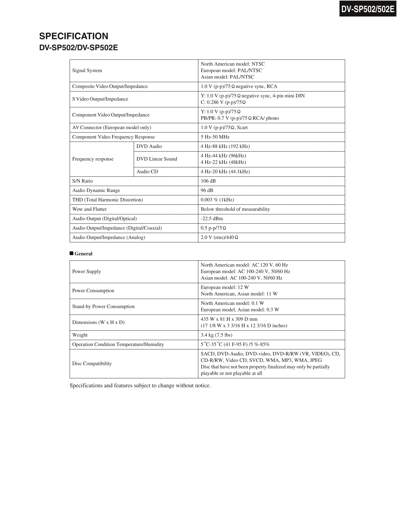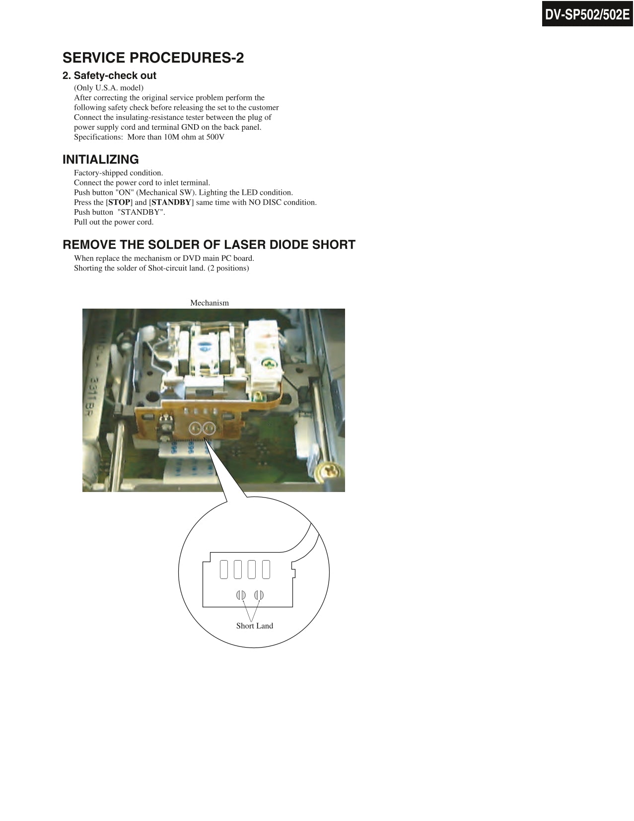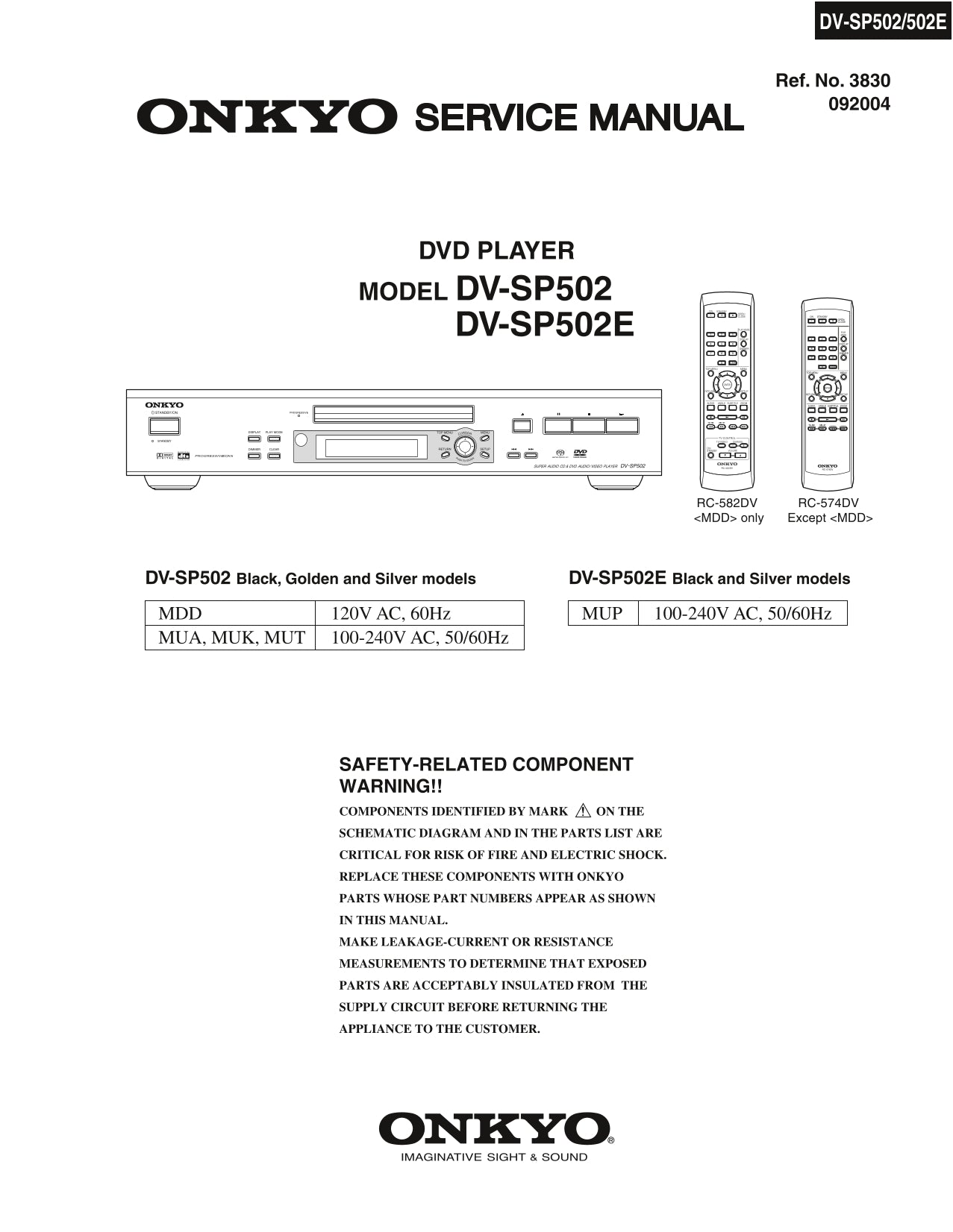 Onkyo DV-SP502 & DV-SP502E DVD Player Service Manual (Pages: 64)