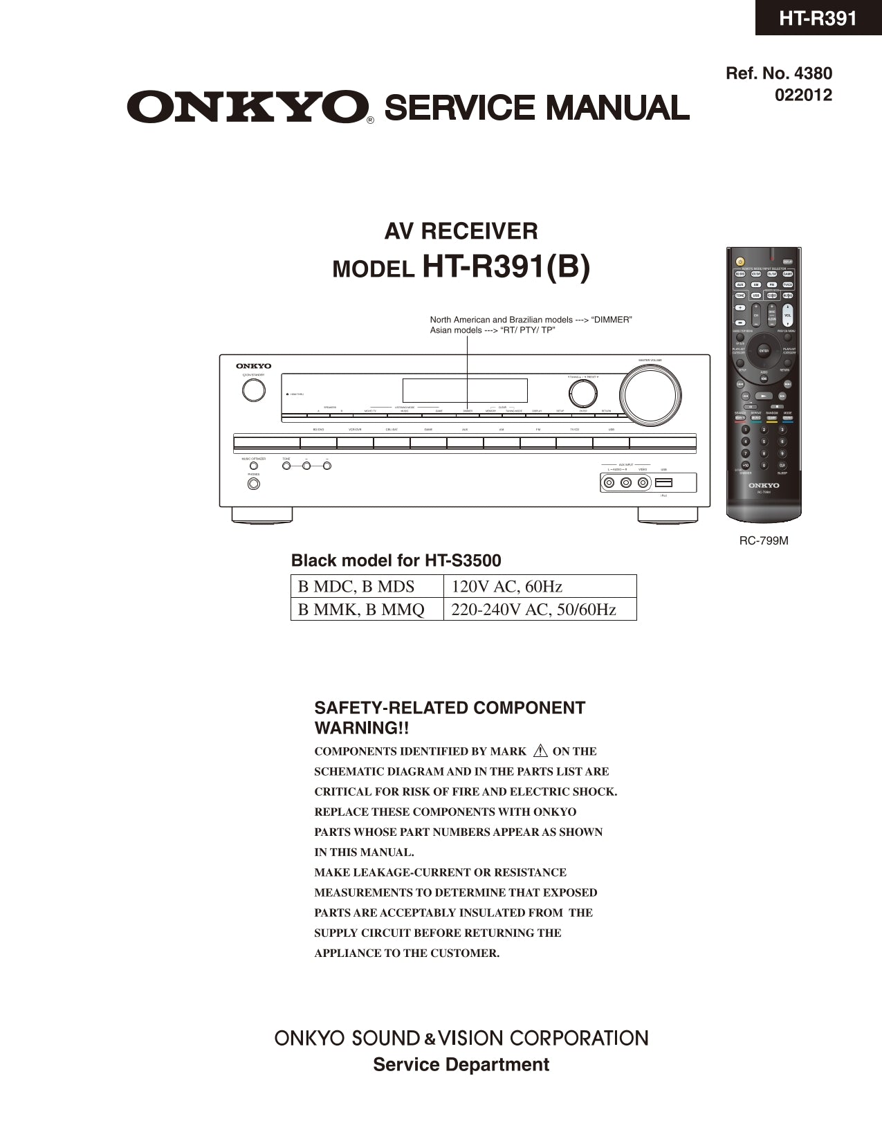 Find out more about the Onkyo HT-R391 & HT-S3500 AV Receiver Service Manual (Pages: 82) with this full manual from Onkyo. This manual includes nan pages of detailed information. Choose to download it or get a professionally printed copy from Manuali.