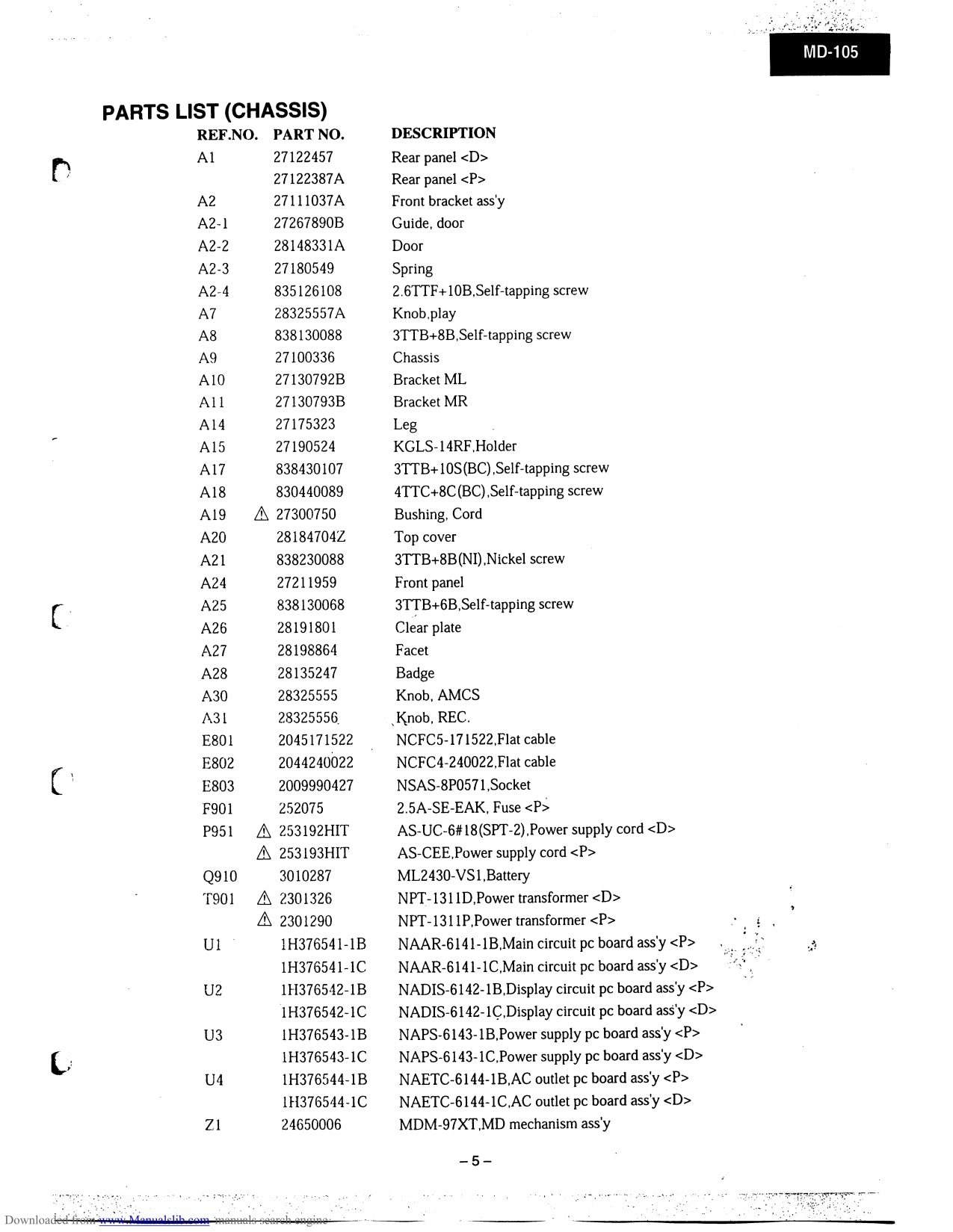 Learn all about the Onkyo MD-105 Mini Disc Recorder Service Manual (Pages: 46) manual from Onkyo. This Service Manual manual is available in both digital download and printed formats from Manuali, your trusted source for professional printing services. This manual contains 46 pages.