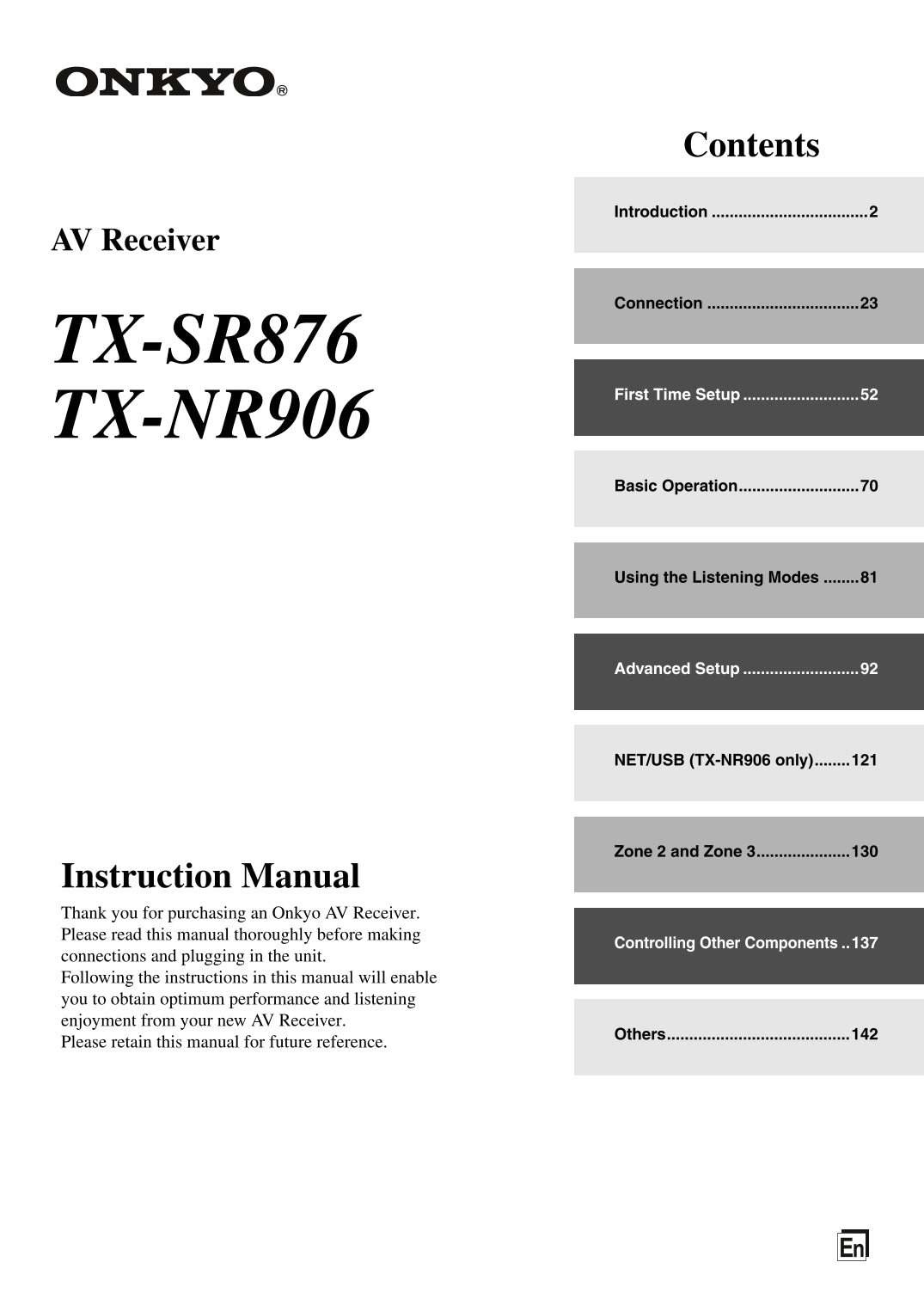 Onkyo TX-NR876 & TX-SR876 Audio Receiver Owner's/ User Manual (Pages: 150)