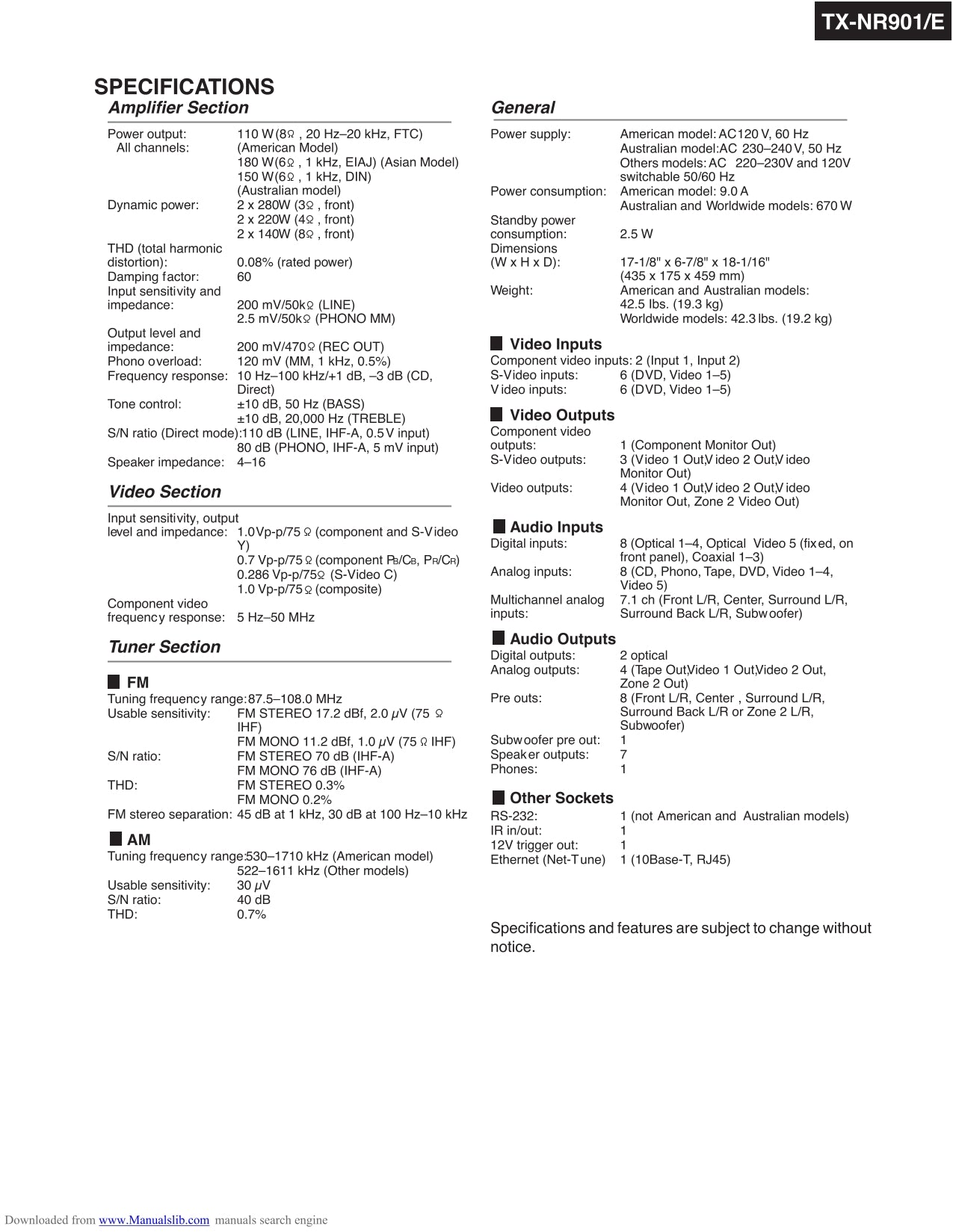Get instant access to the Onkyo TX-NR901 AV Receiver Service Manual (Pages: 135) manual from Onkyo. This manual includes nan pages of detailed information. Choose to download it or get a professionally printed copy from Manuali.