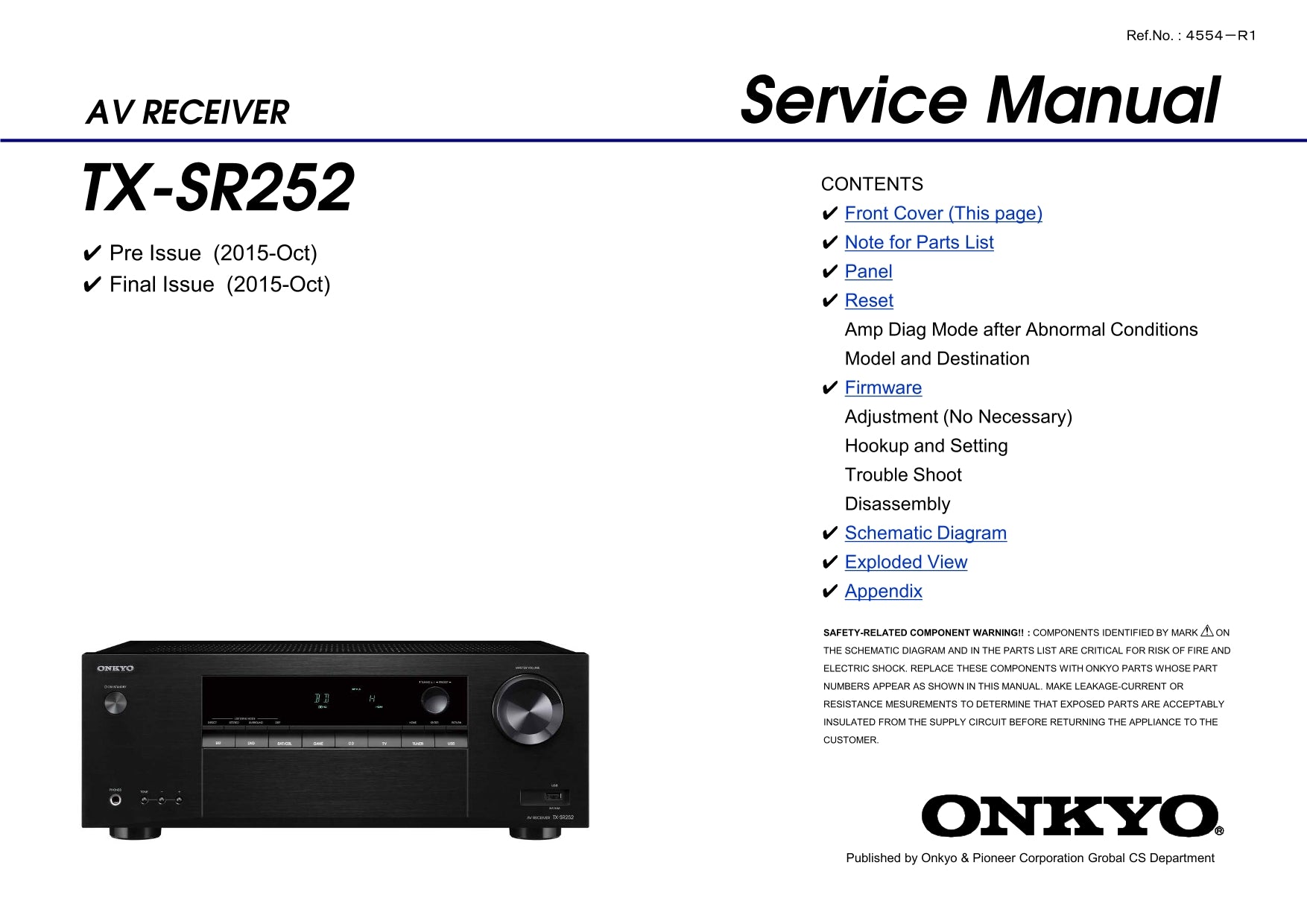 Discover the Onkyo TX-SR252 AV Receiver Service Manual (Pages: 59) manual from Onkyo. This manual includes nan pages of detailed information. Choose to download it or get a professionally printed copy from Manuali.