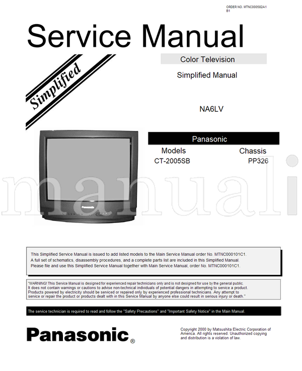 Panasonic CT-2005SB MTNC000582A1 NA6LV PP326 (21 pages) TV Service Manual