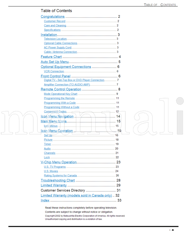 Panasonic CT-27D12D CT-27D12SD CT-32D12D CT-36D12D TQB2AA0384-2 22603 (72 pages) TV Operating Manual