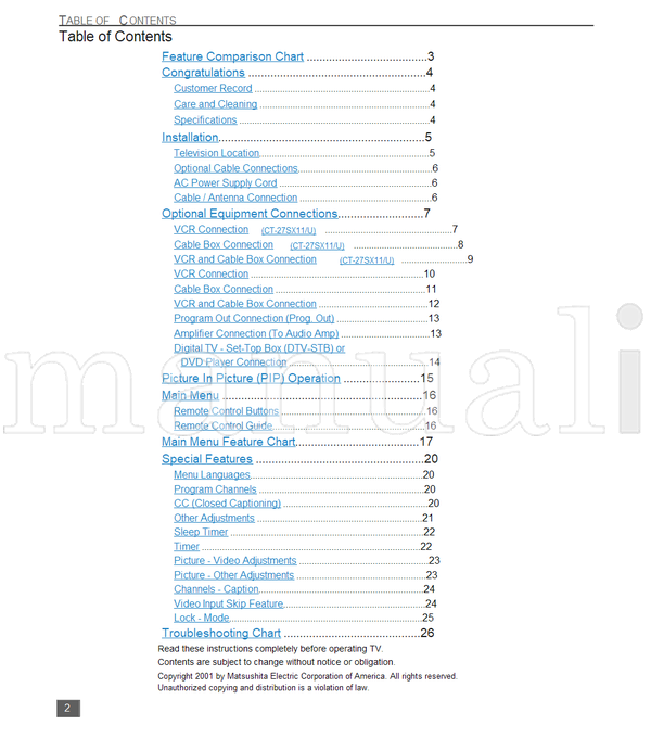 Panasonic CT-27SX11 CT-27SX11U CT-27SX31 CT-27SX31U 1-800-211-PANA (58 pages) TV Operating Manual