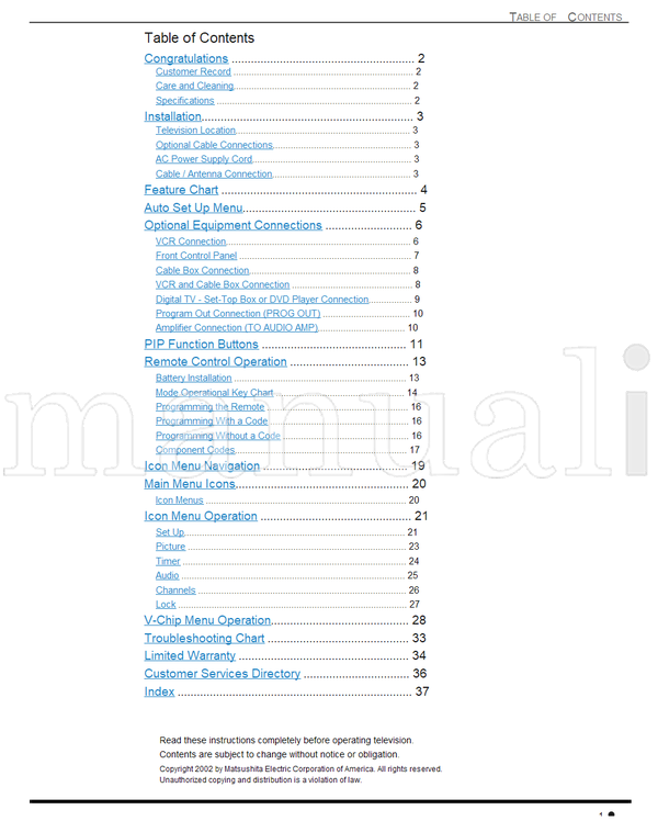 Panasonic CT-32SL32 CT-32SX32 CT-36SL32 CT-36SX32 CT-F3442 CT-F3442L (80 pages) TV Operating Manual