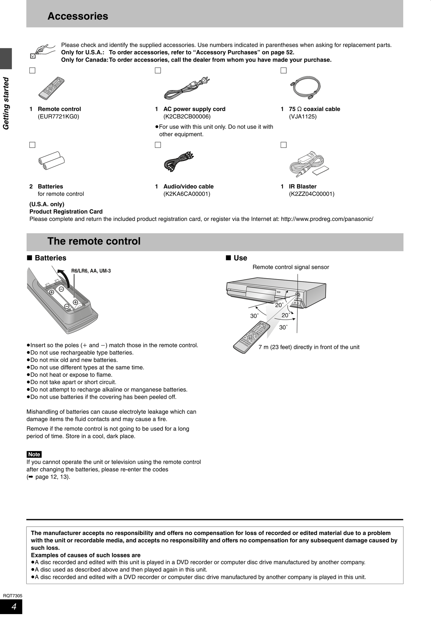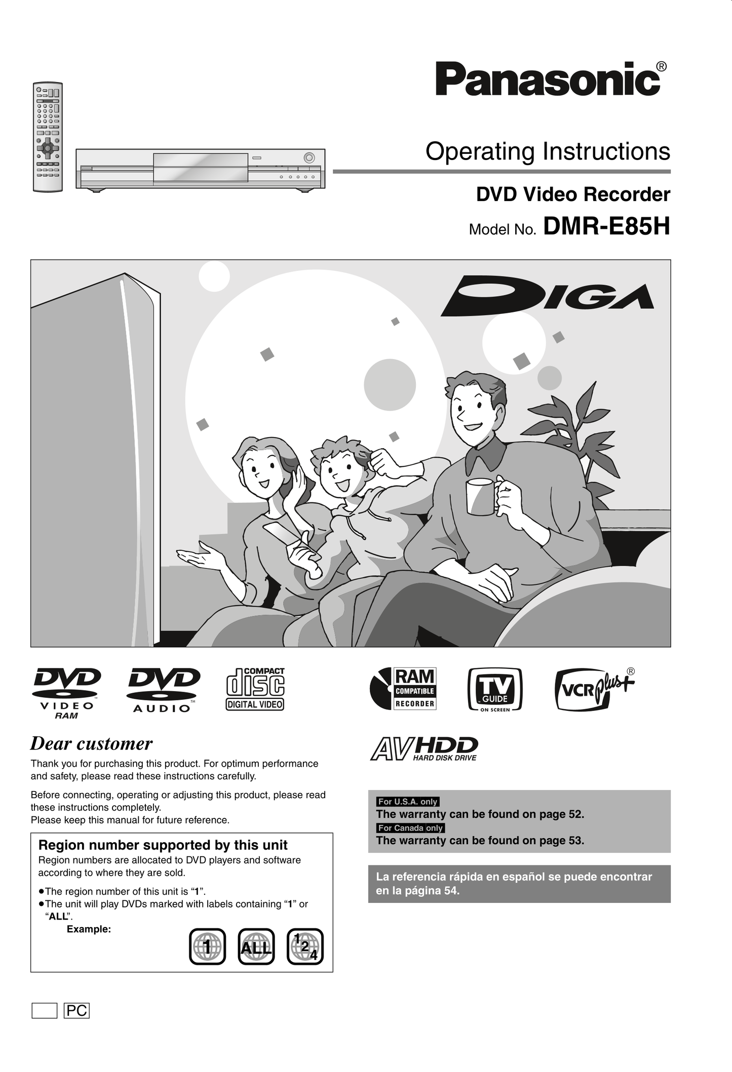 Panasonic DMR-E85H DVD Player/ Recorder Owner's/ User Manual (Pages: 75)