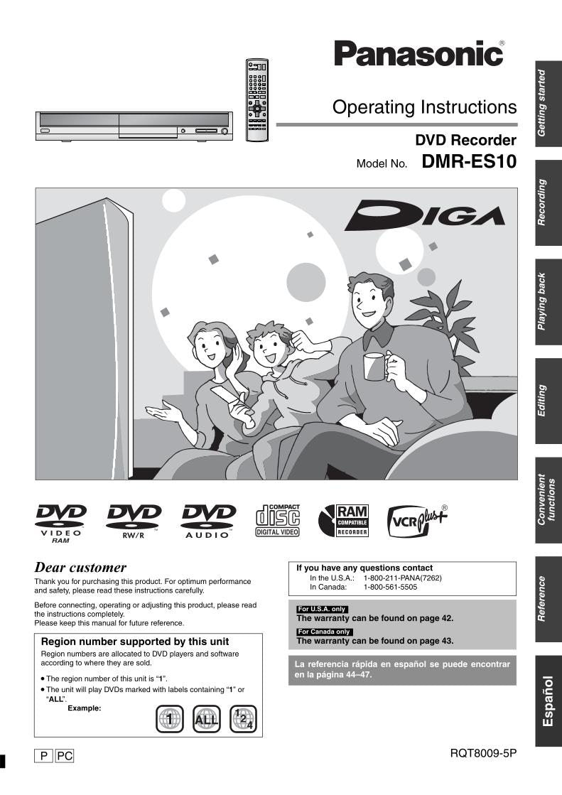 Panasonic DMRES10 DMRES10K DMRES10S DVD Recorder (DVDR) Operating Manual