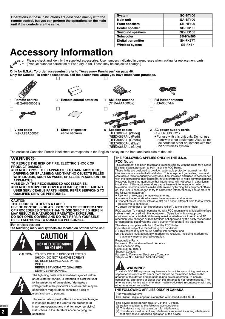 Panasonic SCBT100 Home Theater System Operating Manual