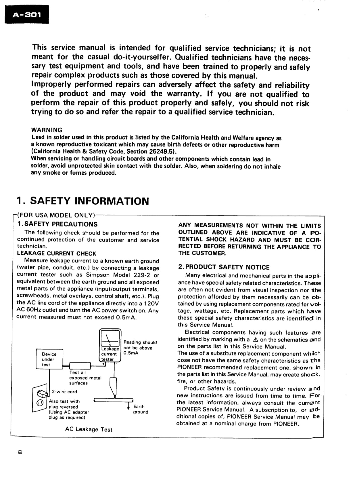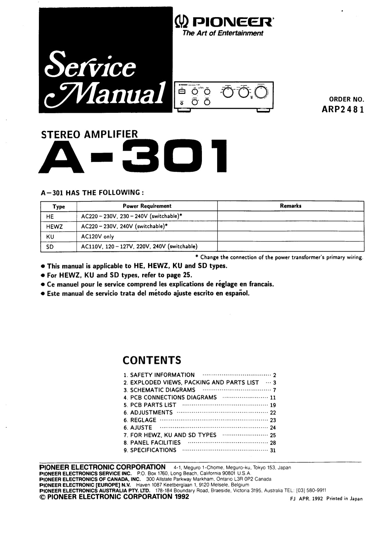 Pioneer A-301 Stereo Amplifier Service Manual (Pages: 25)