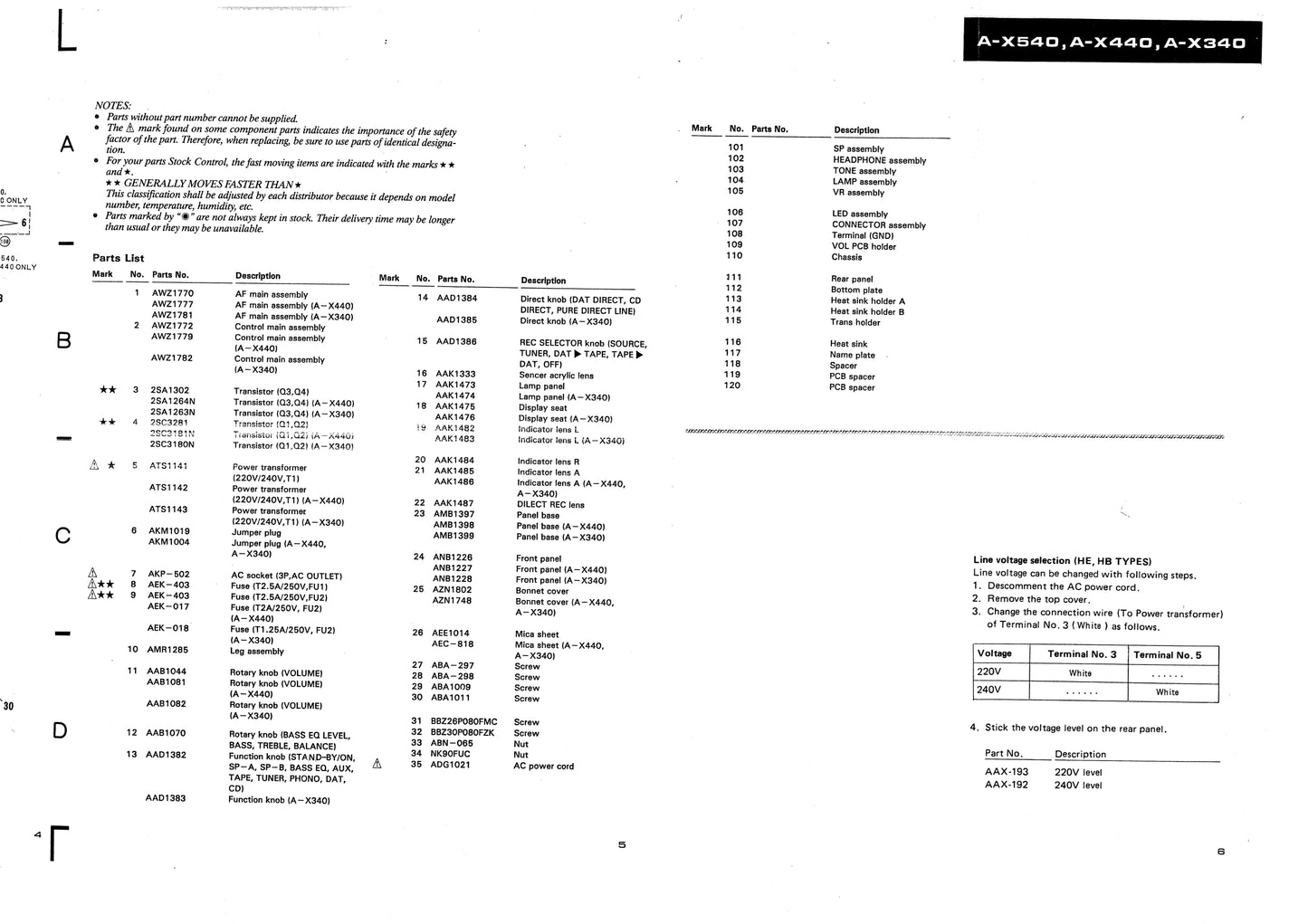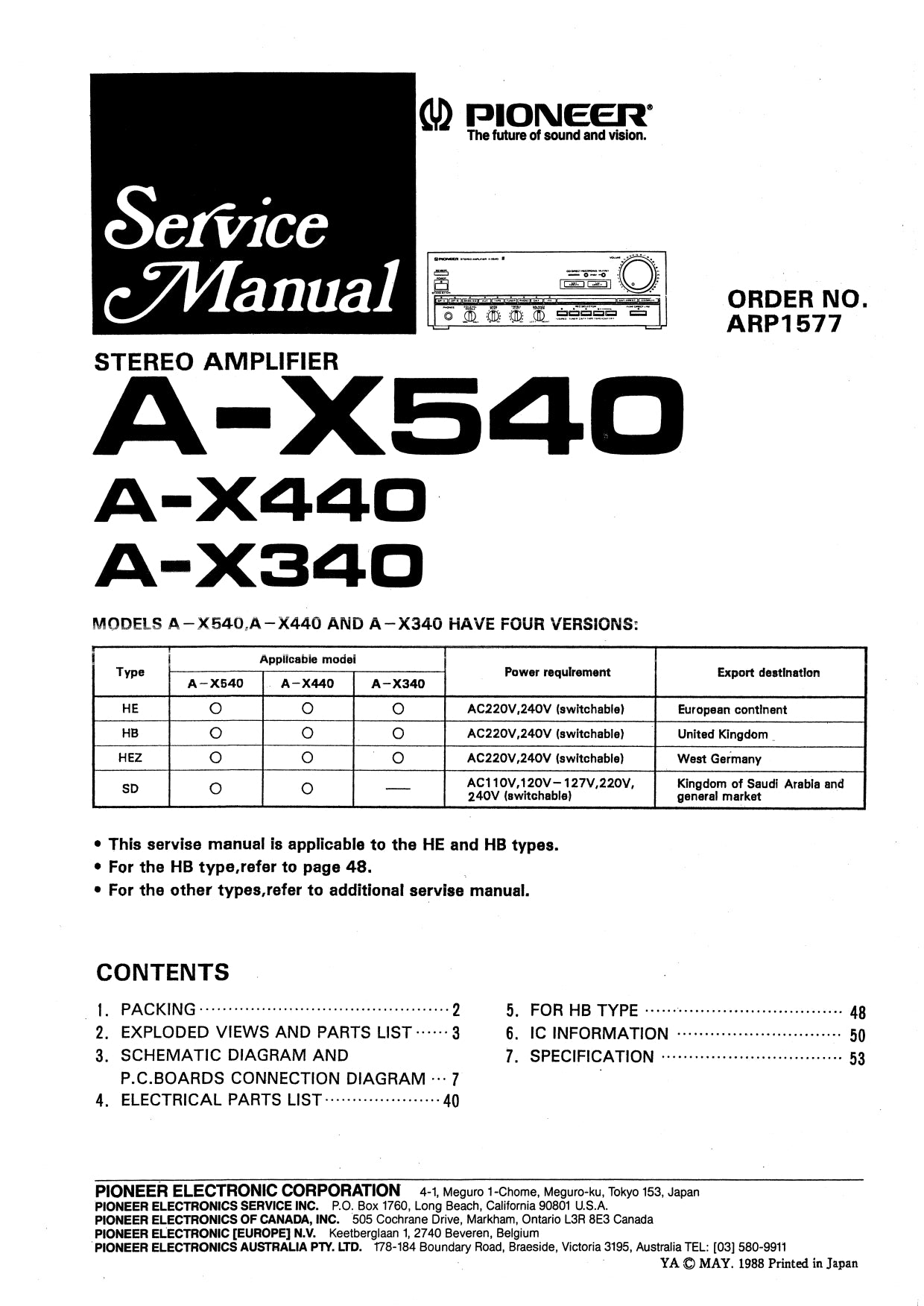 Pioneer A-X340, A-X440 & A-X540 Amplifier Service Manual (Pages: 36)