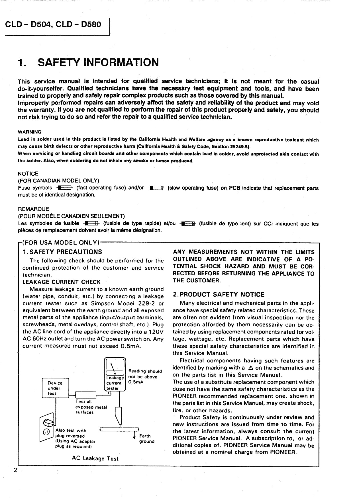 Pioneer CLD-D504 & CLD-D580 CD/ CDV/ LD Player Service Manual (Pages: 54)