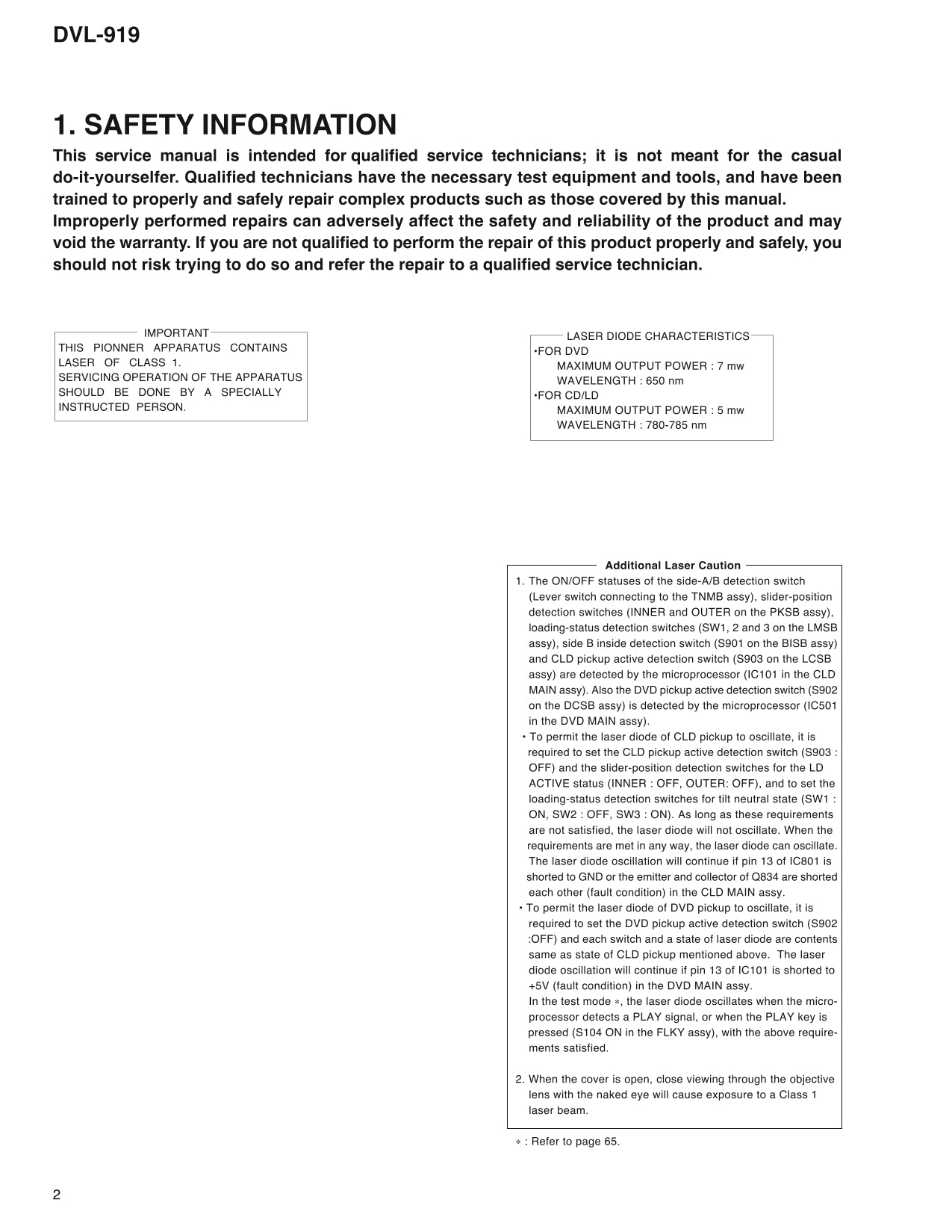 Pioneer DVL-919, DVL-919E DVD/ LD Player Service Manual (Pages: 72)