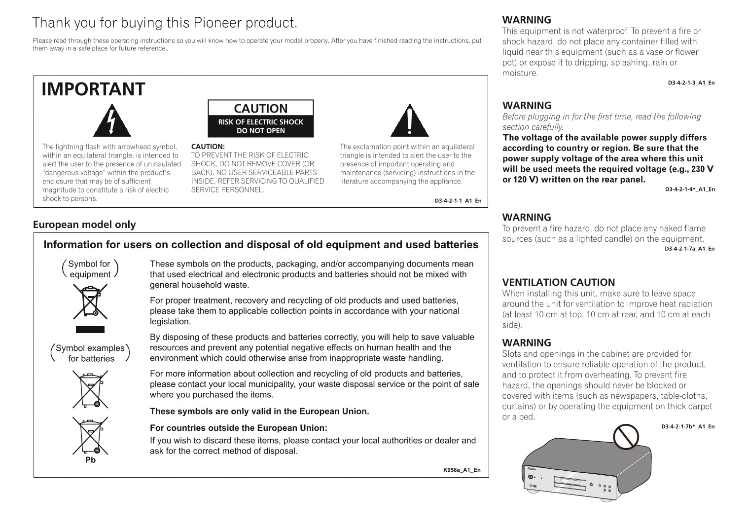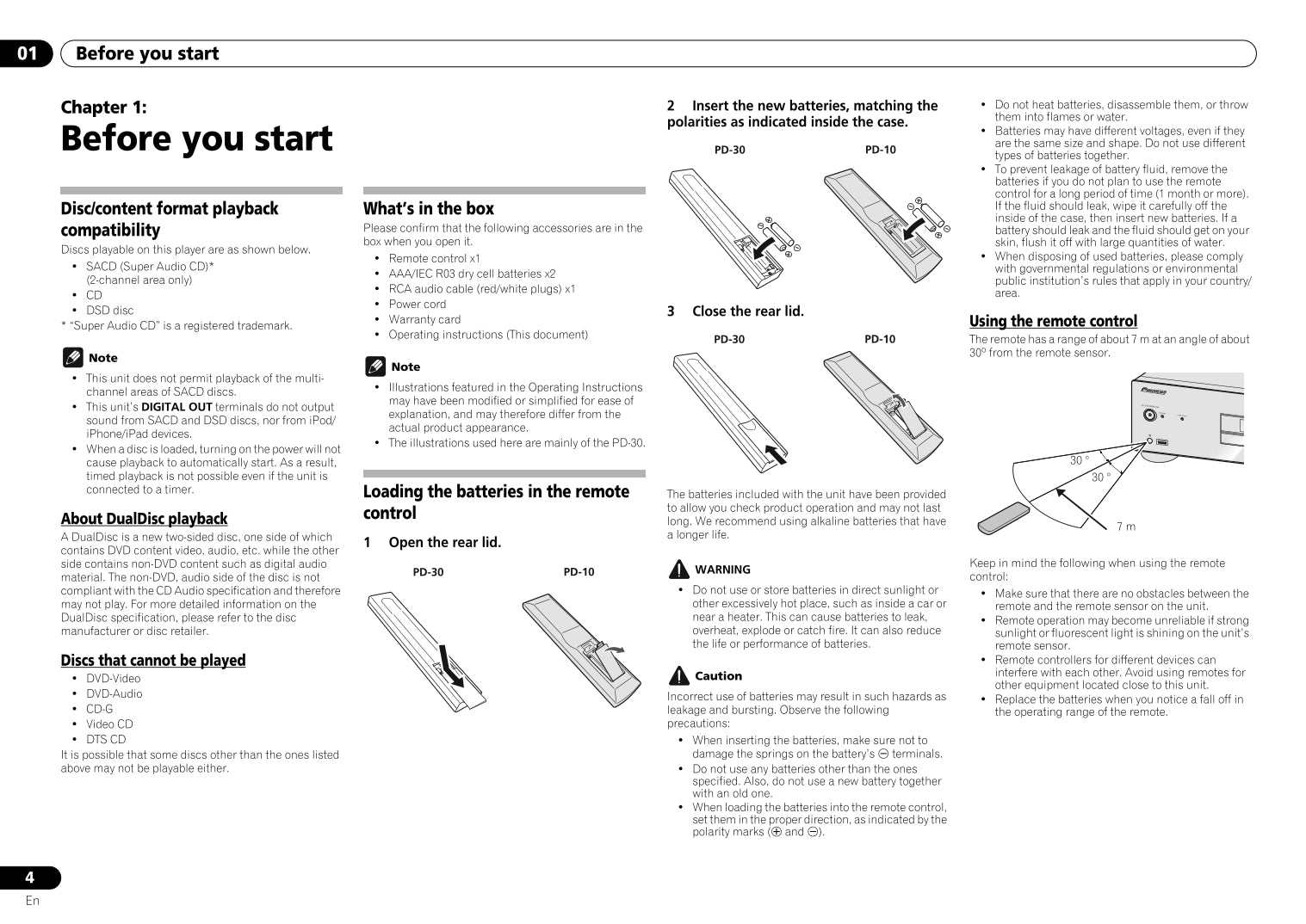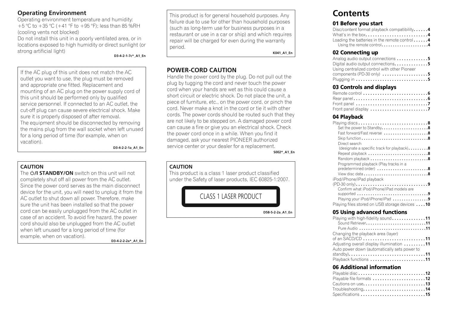 Pioneer PD-10 & PD-30 CD Player Owner/ User Manual (Pages: 16)
