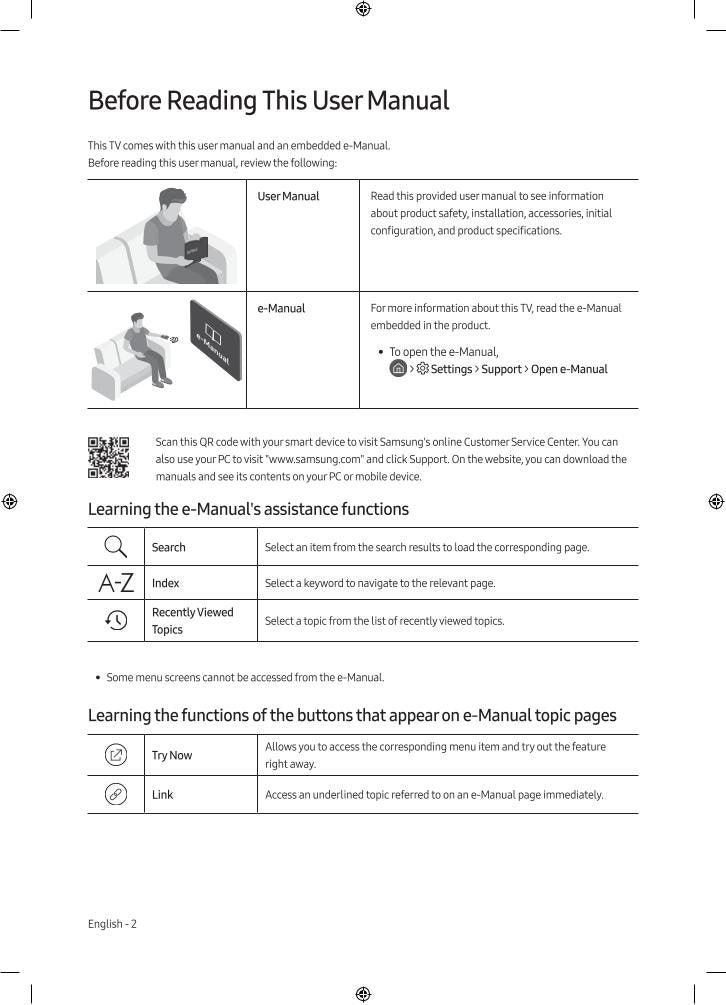 Unlock the potential of your Samsung QN65Q900RBFXZAOM TV Operating Manual, brought to you by Samsung. This Operating Manual is an invaluable resource for understanding and utilizing your equipment. This manual spans 24 pages. Available now at Manuali in both professional print and digital formats.