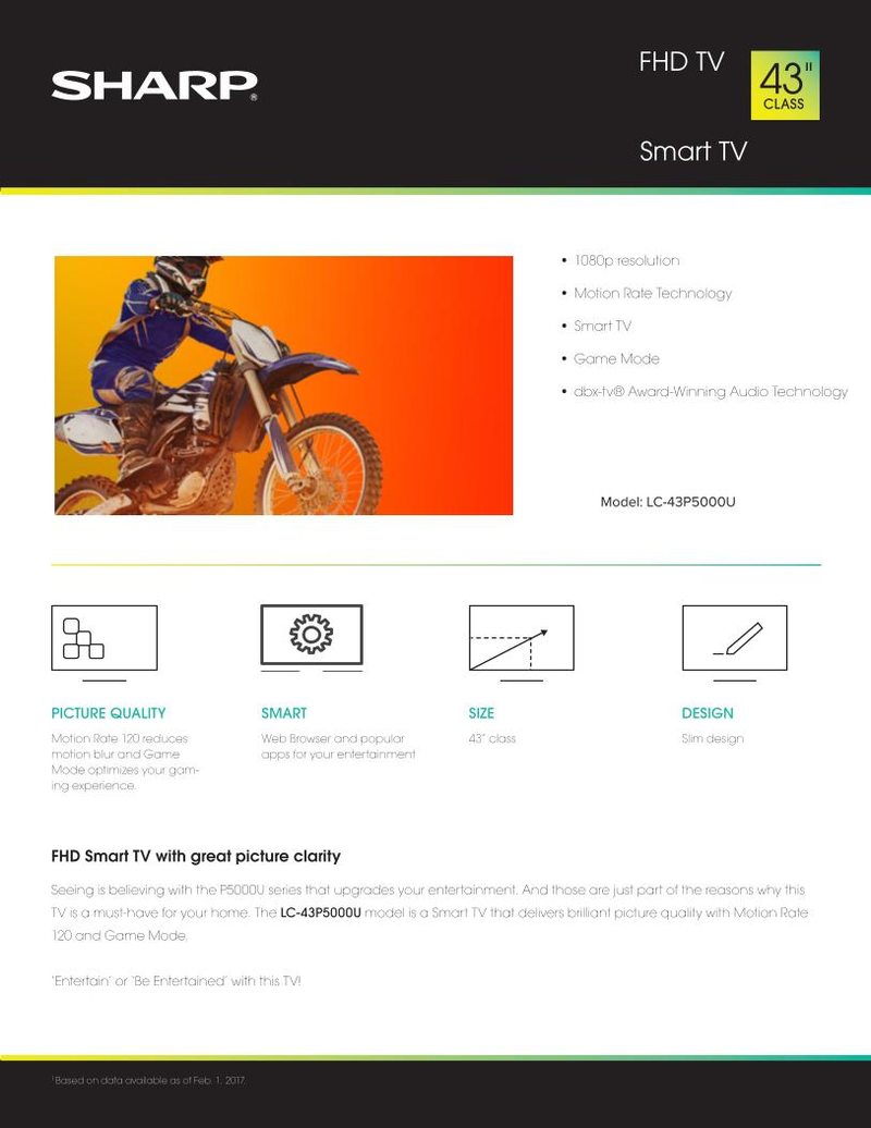 Get equipped with the detailed instructions for Sharp LC-43P5000U TV Operating Manual, brought to you by Sharp. This Operating Manual is an invaluable resource for understanding and utilizing your equipment. This manual spans 2 pages. Available now at Manuali in both professional print and digital formats.