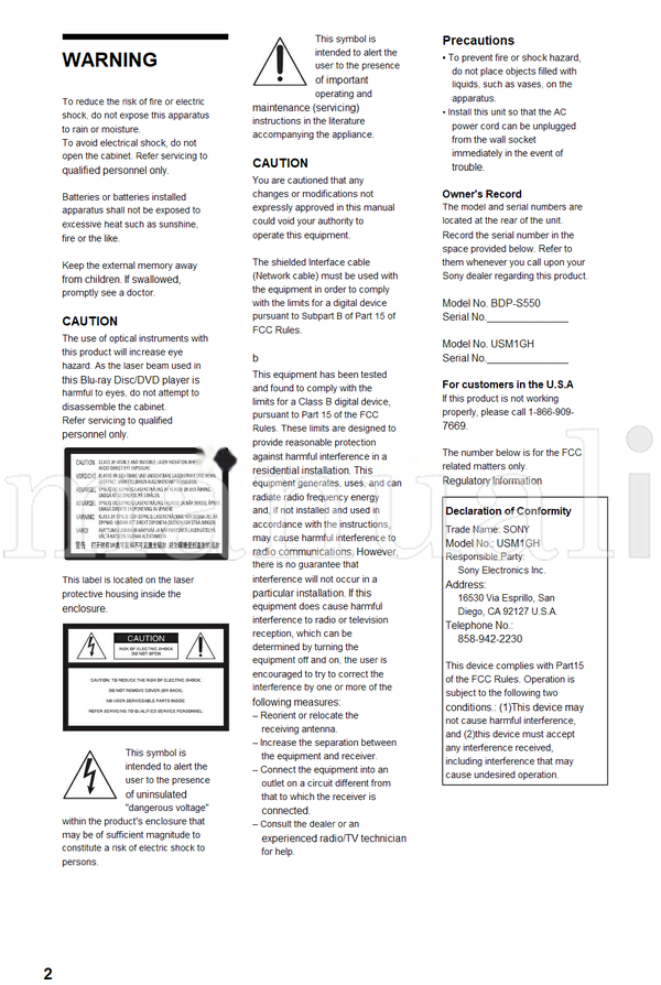 Sony BDP-S550 83 pages Blu-Ray DVD Player Operating Manual