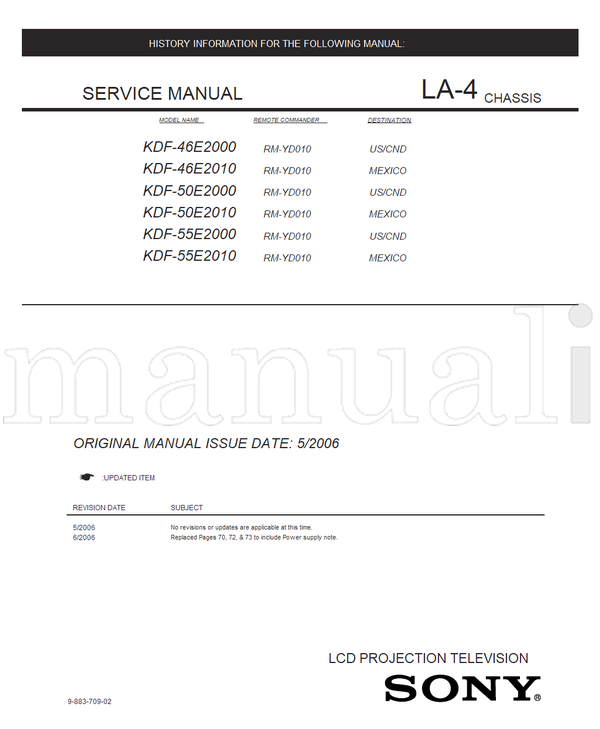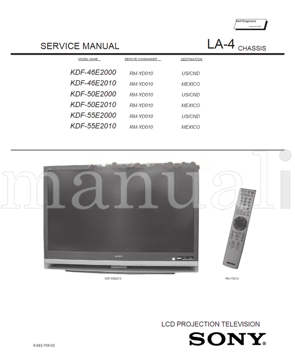 Sony KDF-46E2000 KDF-46E2010 KDF-50E2000 KDF-50E2010 KDF-55E2000 (139 pages) TV Service Manual