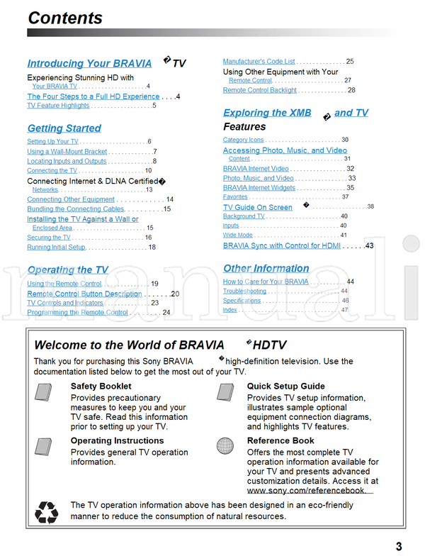 Sony KDL-52XBR9 KDL-46XBR9 KDL-40XBR9 (48 pages) TV Operating Manual