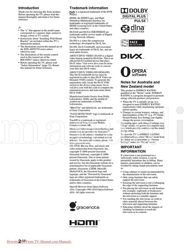 Sony KDL-60NX723 60NX720 55HX925 55HX923 55HX820 55NX723 55NX720 (36 pages) TV Operating Manual