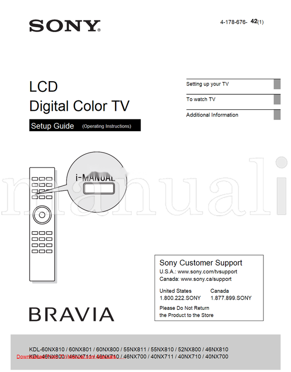 For models: 4178676, 40NX700, 40NX710, 40NX711, 46NX700, 46NX710, 46NX711, 46NX810, 52NX800, 55NX810, 55NX811, 60NX800, 60NX801, KDL46NX800, KDL60NX810