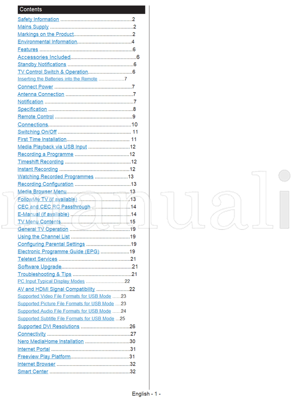 Toshiba 32W3754DB (36 pages) TV Operating Manual
