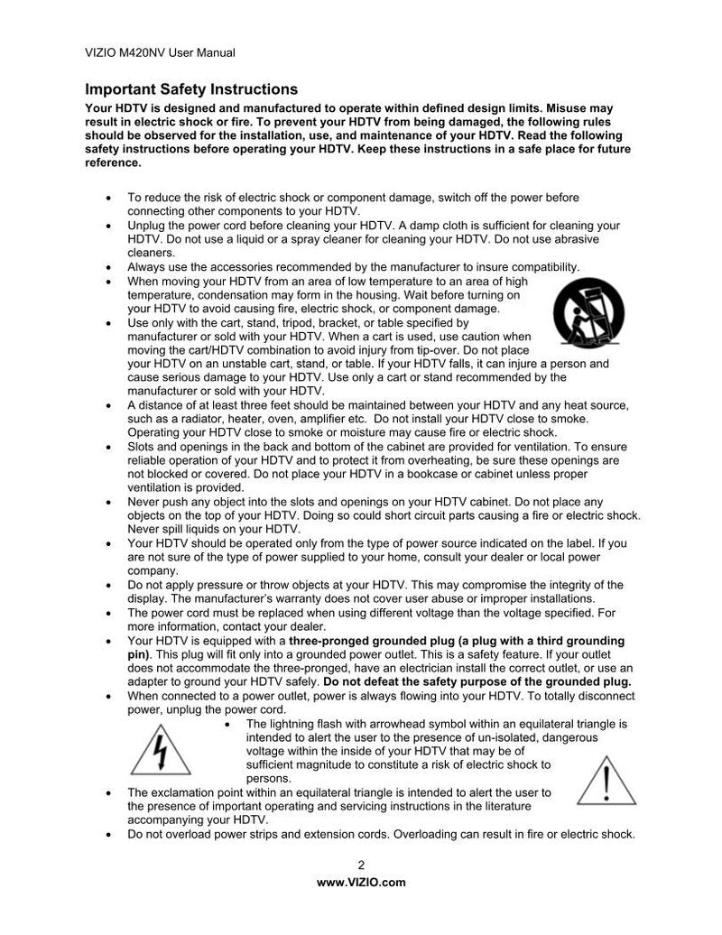 Vizio M420NV TV Operating Manual