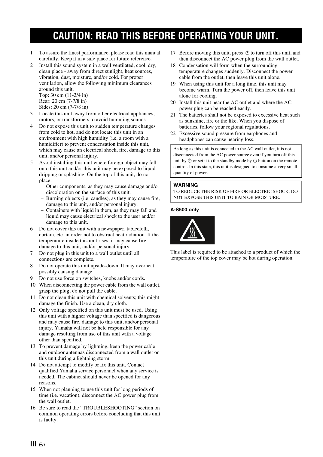 Yamaha A-S300 & A-S300 Amplifier Owner's/ User Manual (Pages: 22)
