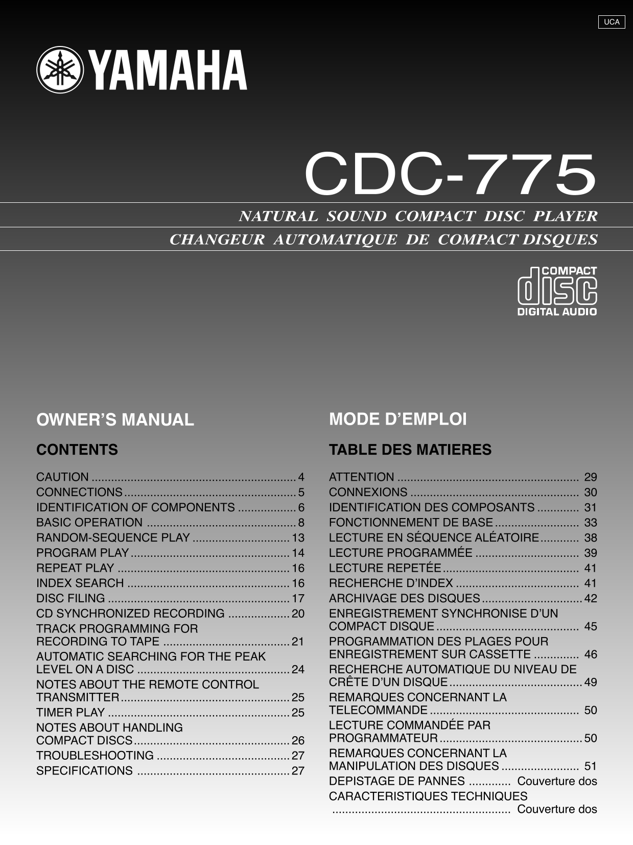 Yamaha CDC-775 CD Player Owner's/ User Manual (Pages: 28)