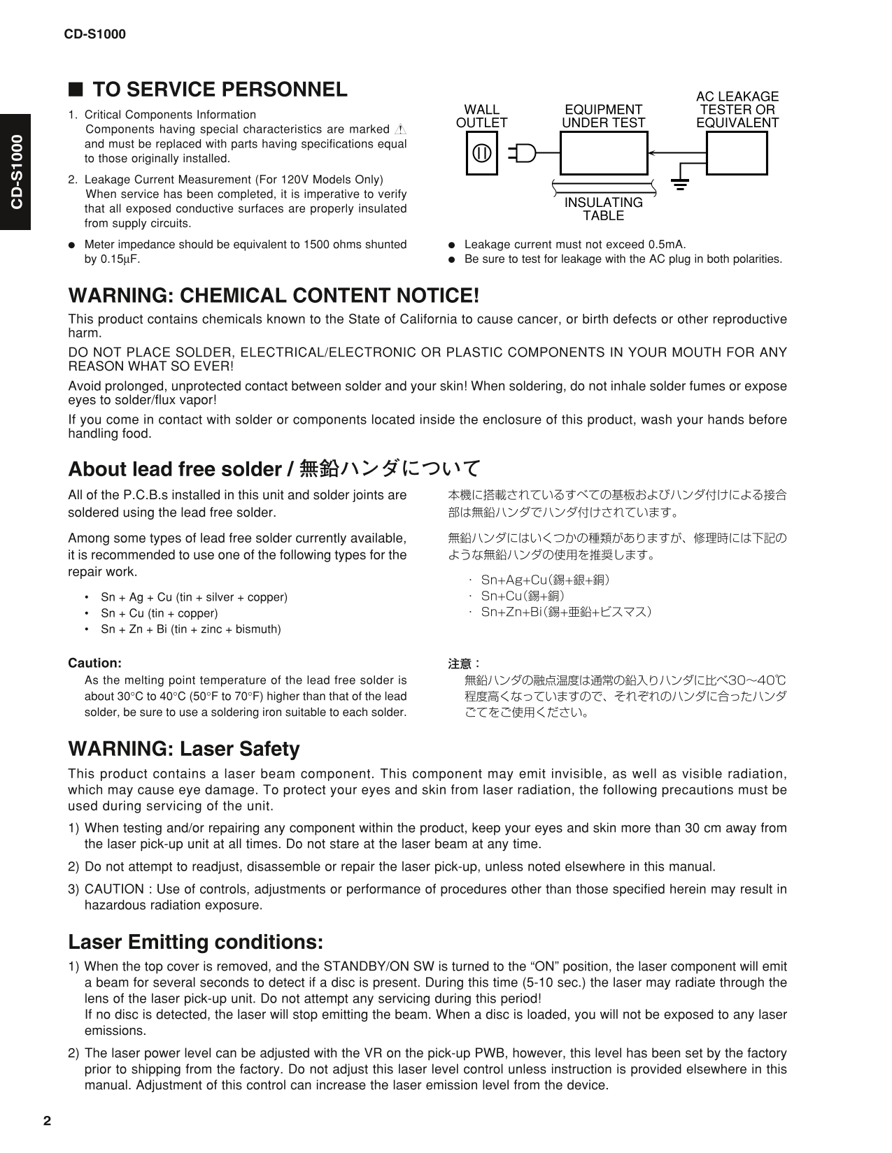 Yamaha CDR-S1000 CD Player Service Manual (Pages: 48)