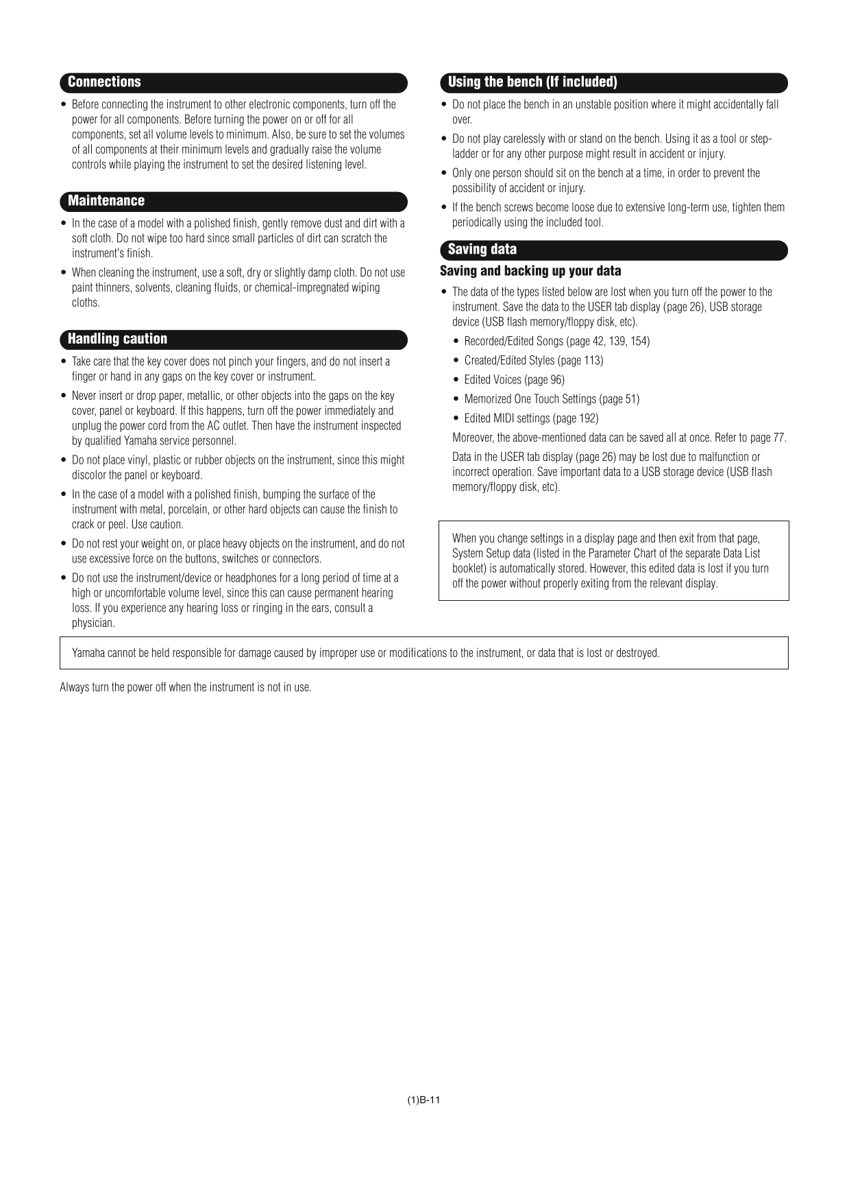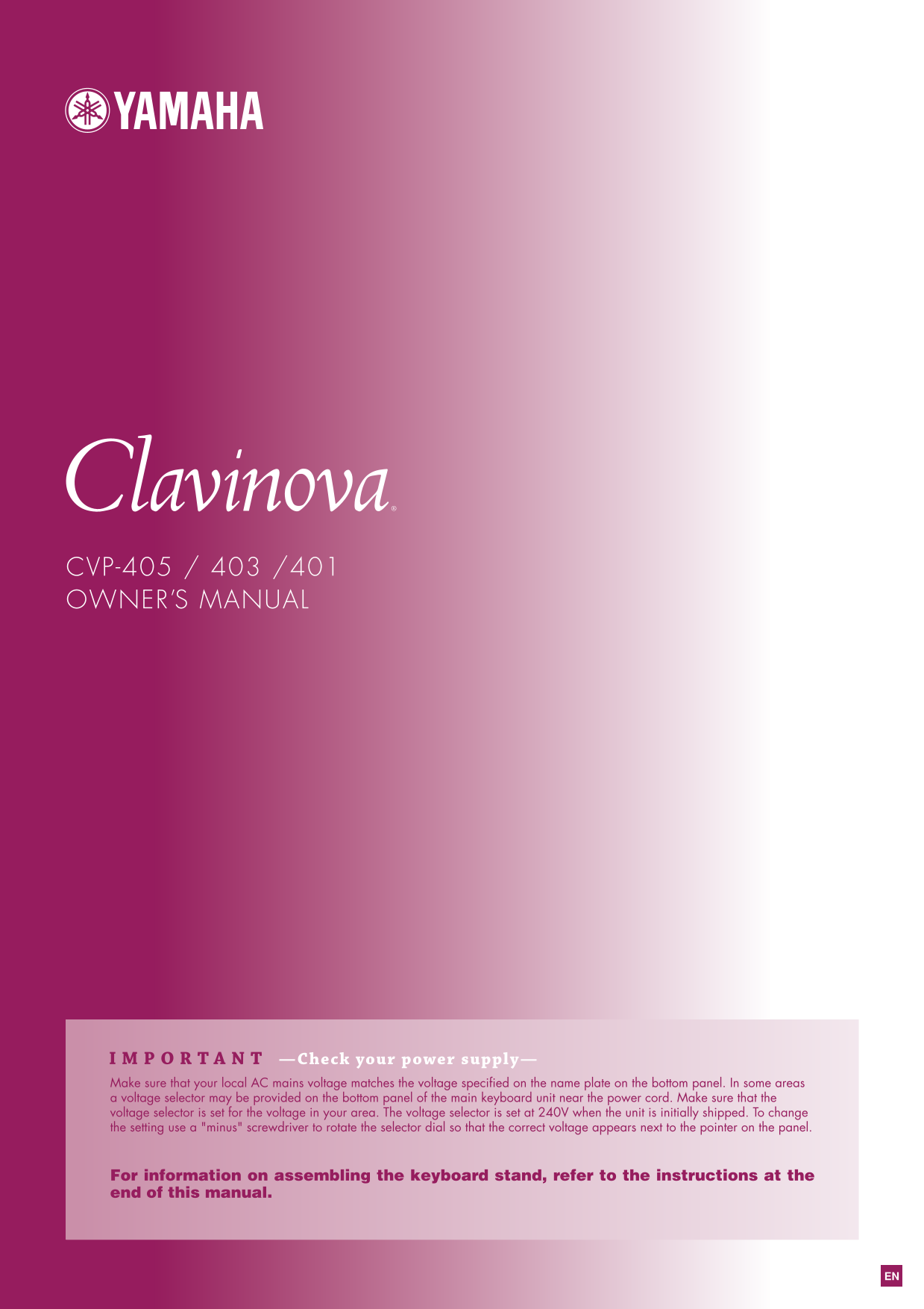 Yamaha CVP-401, CVP-403 & CVP-405 Digital Piano Owner's/ User Manual (Pages: 226)