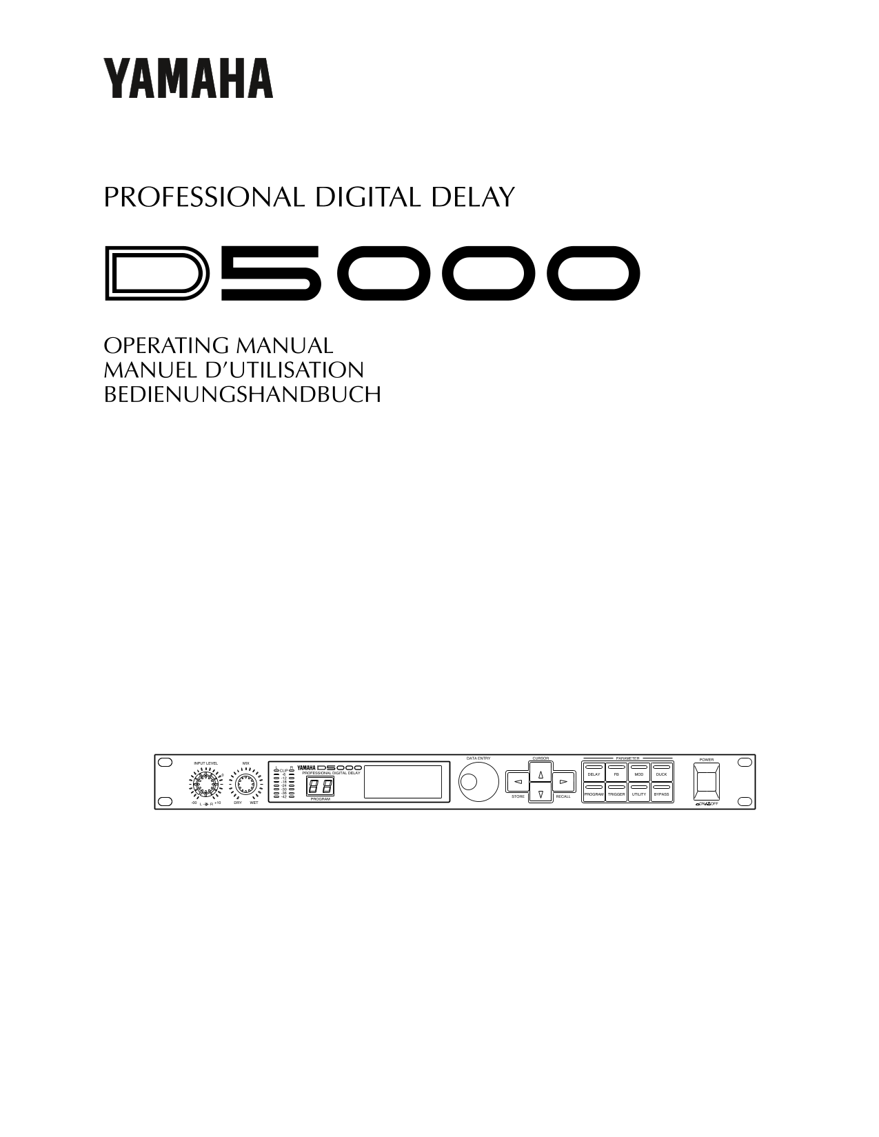 Get equipped with the detailed instructions for Yamaha D5000 Professional Digital Delay Owner/ User Manual (Pages: 42), brought to you by Yamaha. This Operating Manual is an invaluable resource for understanding and utilizing your equipment. Available now at Manuali in both professional print and digital formats.