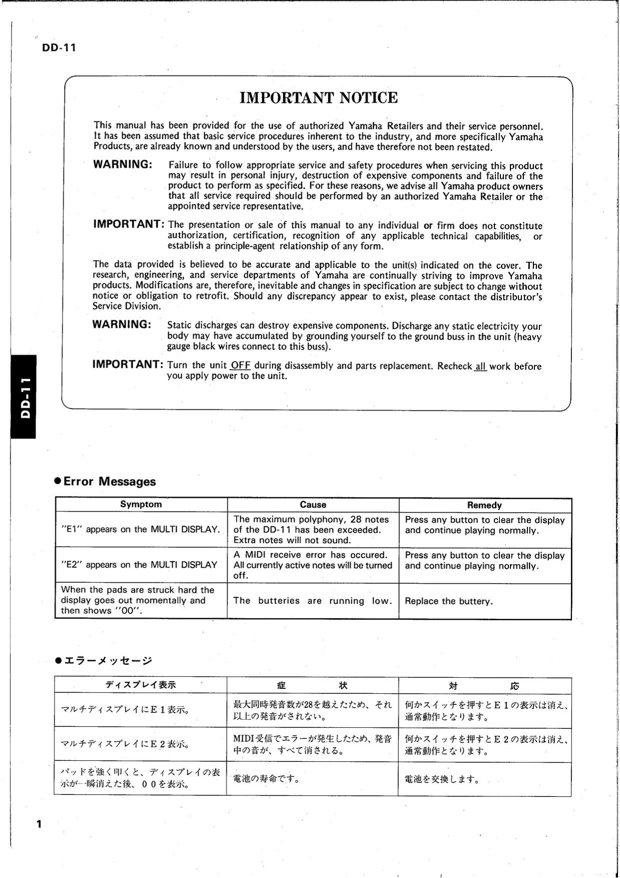 Yamaha DD-11 Digital Percussion Drum Machine Service Manual (Pages: 20)