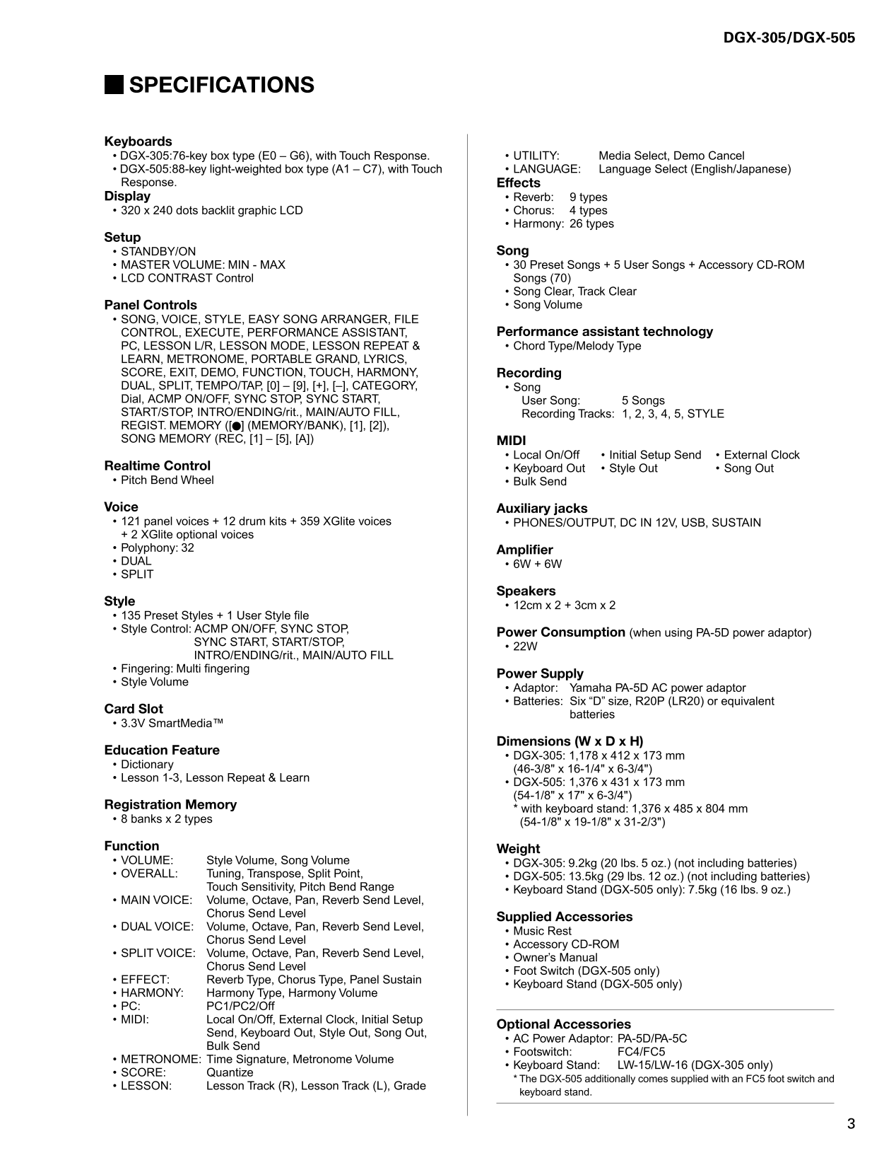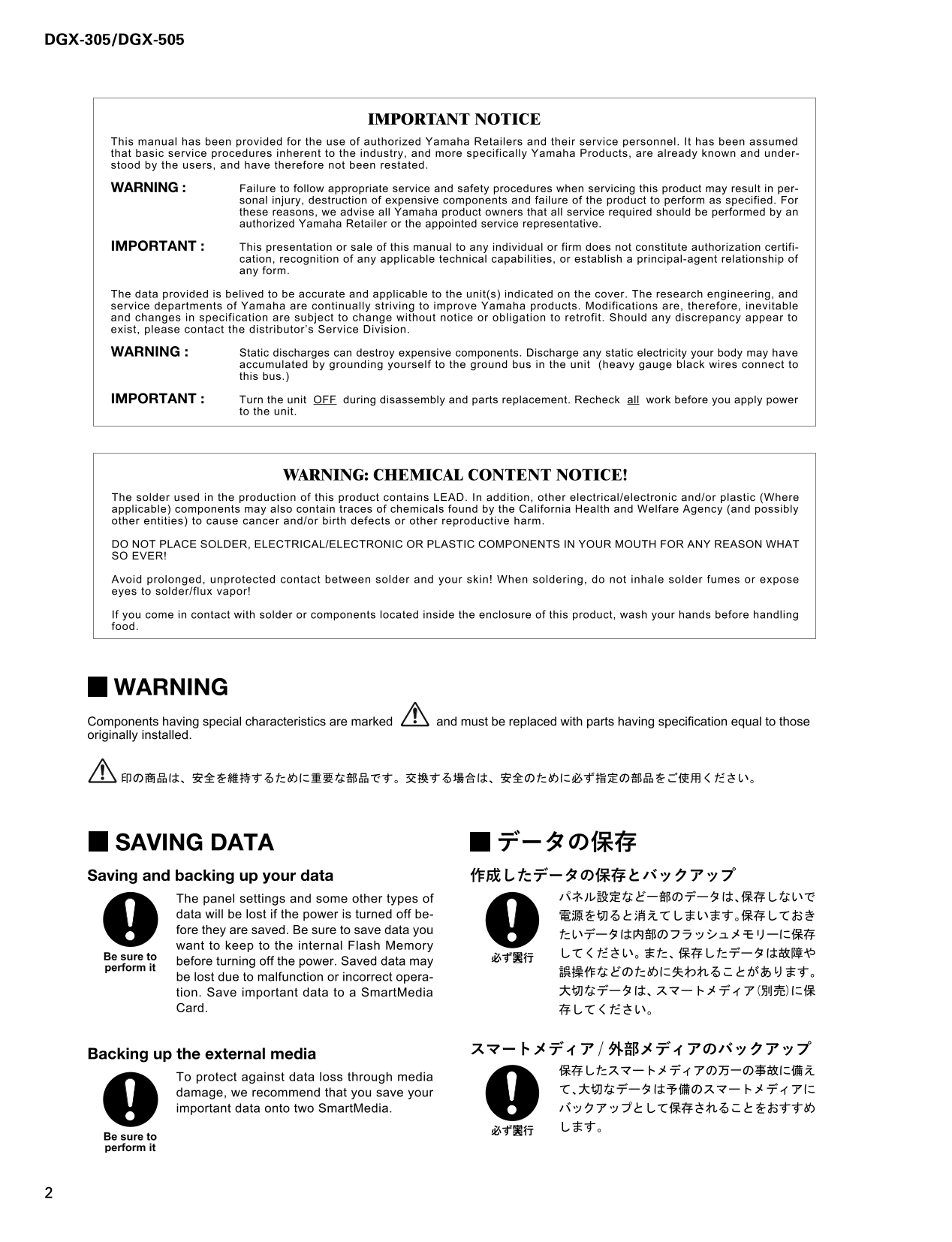 Yamaha DGX-305 Digital Grand Piano Keyboard Service Manual (Pages: 92)
