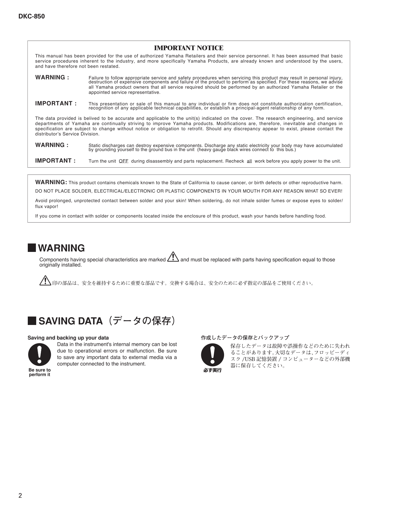 Yamaha DKC-850 Digital Piano Service Manual (Pages: 22)