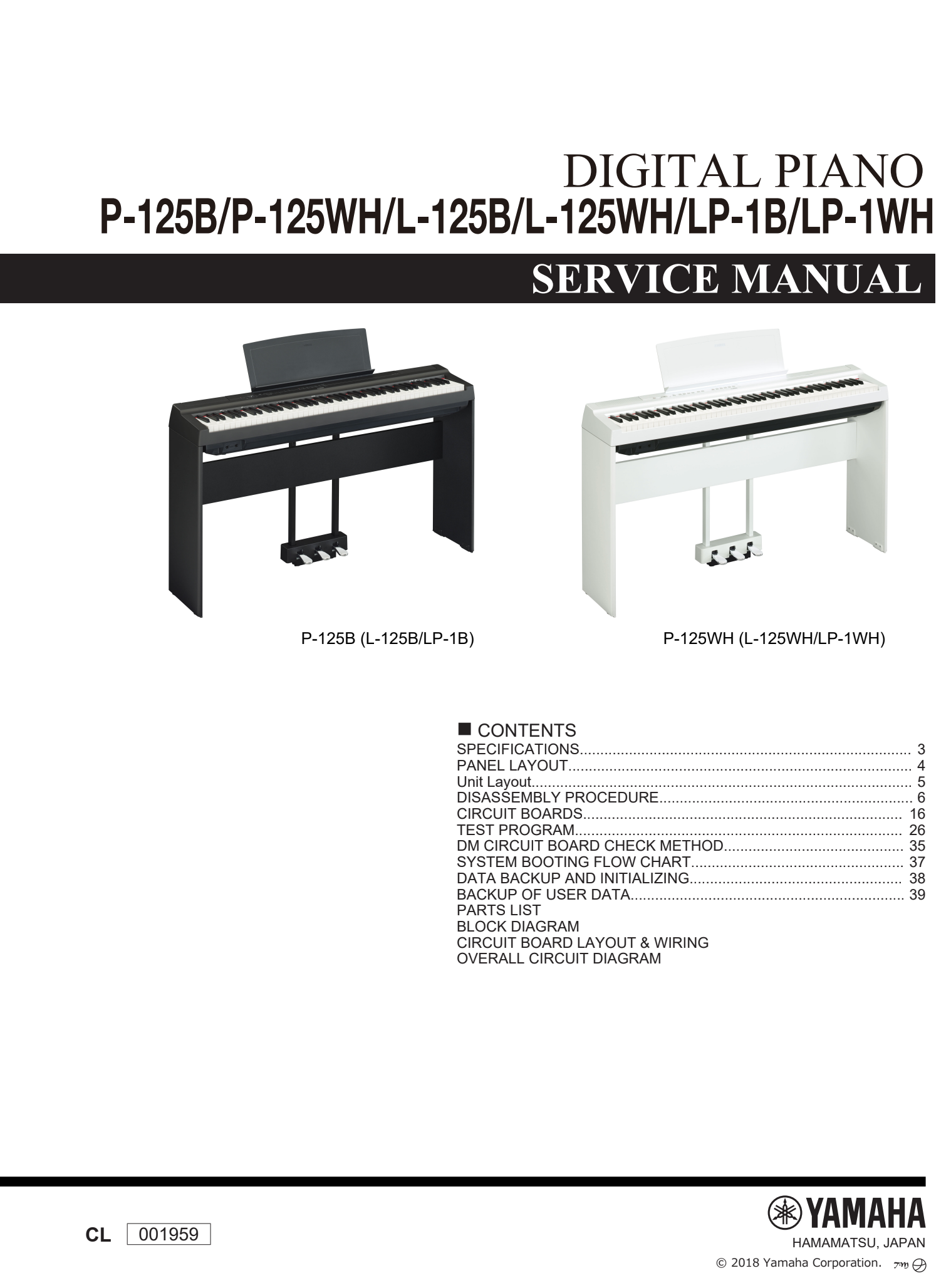 Yamaha P-125, P-125B & P-125WH Digital Piano Service Manual (Pages: 70)