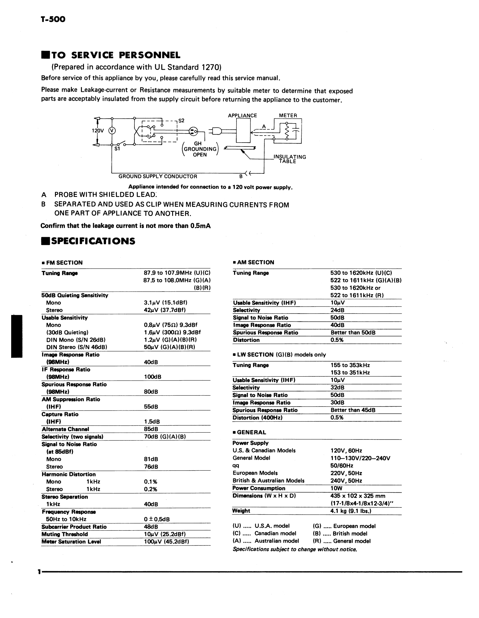 Yamaha T-500 AM/FM Stereo Tuner Service Manual (Pages: 24)